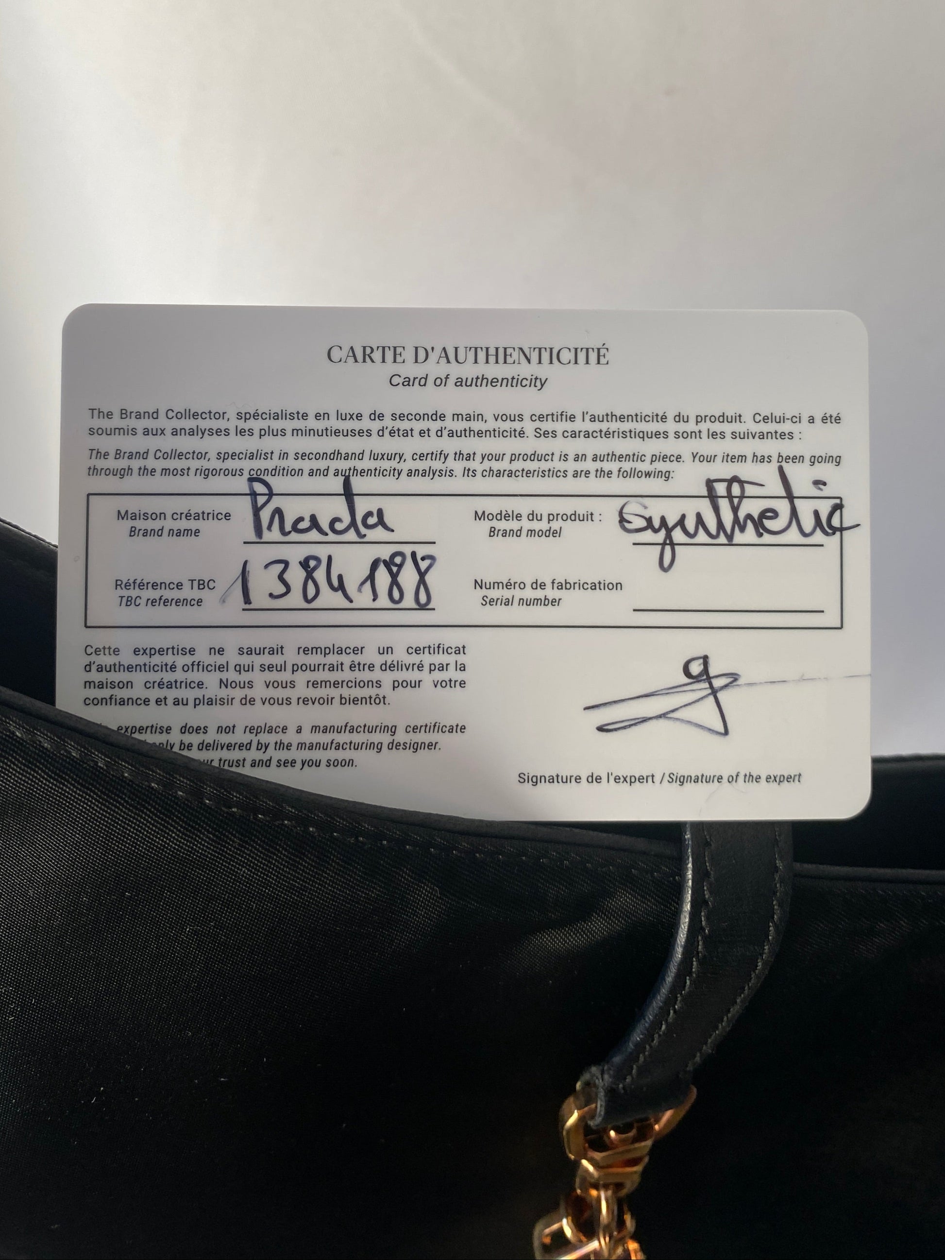 Klassische Schultertasche von Prada mit bronzefarbener Hardware.